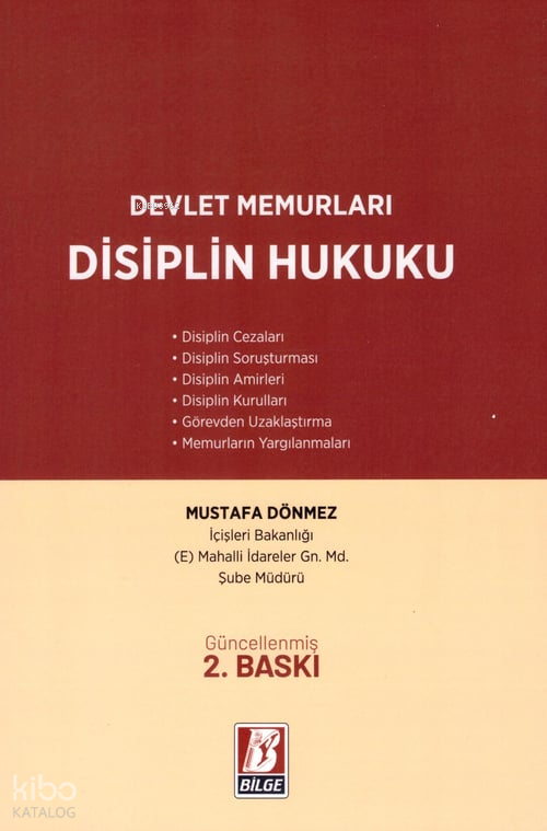 "Devlet Memurları Disiplin Hukuku", Mustafa Dönmez tarafından kaleme alınmış ve Bilge Yayınevi tarafından Mayıs 2024'te yayımlanmıştır. Kitap, 263 sayfa olup 16x24 cm boyutlarındadır. Eser, devlet memurlarının disiplin süreçlerini sade ve anlaşılır bir şekilde ele alarak, uygulamaya yönelik bir rehber niteliği taşımaktadır. İçeriğinde disiplin cezaları, disiplin soruşturması, disiplin kurulları, görevden uzaklaştırma ve memurların yargılanmaları gibi konular bulunmaktadır.