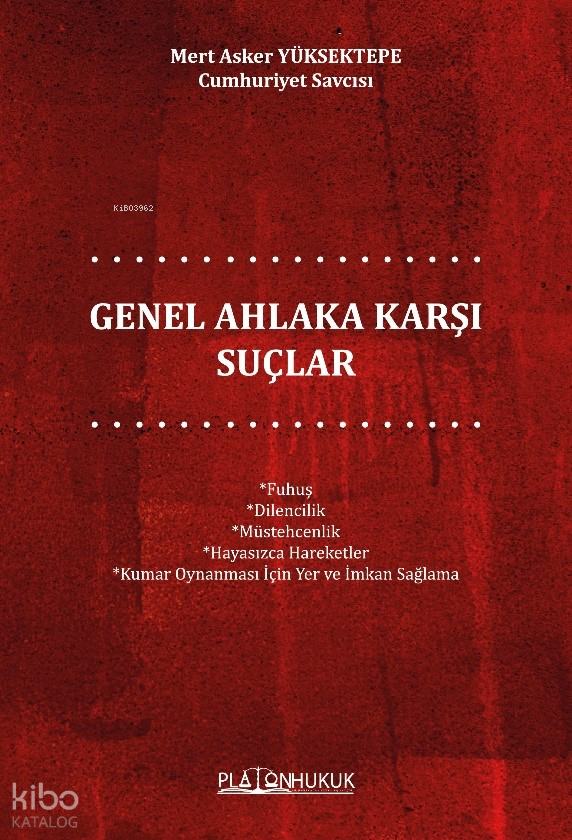 5237 Sayılı Türk Ceza Kanunu'nda, “Topluma Karşı Suçlar” başlıklı üçüncü kısmının, TCK’nın 225. maddesinde düzenlenen “Hayasızca Hareketler”, TCK’nın 226. maddesinde düzenlenen “Müstehcenlik”; TCK’nın 227. maddesinde düzenlenen “Fuhuş”, TCK’nın 228. maddesinde düzenlenen “Kumar Oynanması İçin Yer ve İmkan Sağlama”, TCK’nın 229. maddesinde düzenlenen “Dilencilik” suçlarının yer aldığı yedinci bölümündeki “Genel Ahlâka Karşı Suçlar” ile ilgili hazırladığım bu eserin birinci baskısını uygulamada ka ...