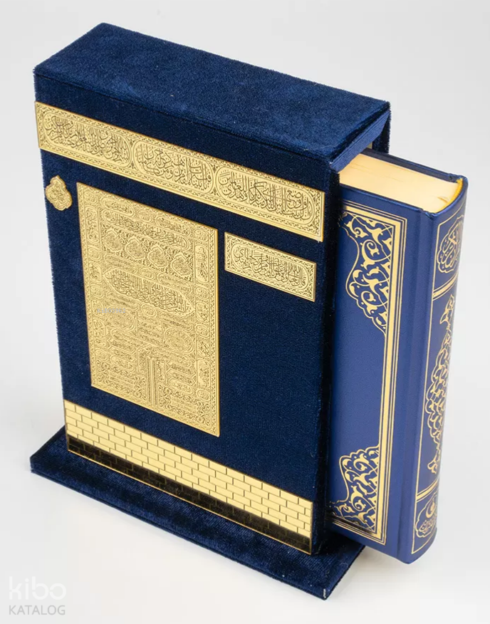 Kur'an-ı Kerim (Ahşap Raşel Kaplama Dik Kutulu Hafız Boy - Pleksili, Lacivert)
