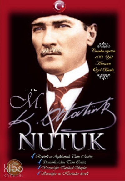 Türkiye Cumhuriyeti'nin kurucusu Ulu Önder Mustafa Kemal Atatürk'ün Nutuk isimli kitabı yaklaşık 800 sayfadan oluşuyor ve yayınevimiz aracılığıyla kitabın TAMAMI size üst düzeyde kalitede TEK bir kitap olarak, Cumhuriyetin 100 yıl anısına Özel Baskı formatında sizlere sunuluyor. Atamızın “Nutuk” isimli kitabını siz değerli okurlarımızla paylaşmadan olmazdı. M. Kemal Atatürk'ün kendisine ait ve kendisinin yazmış olduğu bu kalın kitap ile ne kadar kuvvetli ve hitabeti sağlam bir öncü olduğunu bir ...