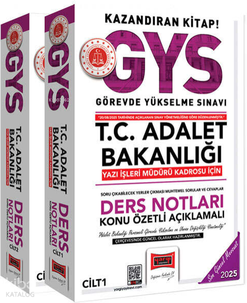 Yargı Yayınları 2025 GYS T.C Adalet Bakanlığı Yazı İşleri Müdürü Kadrosu İçin Ders Notları (Güncel Baskı)