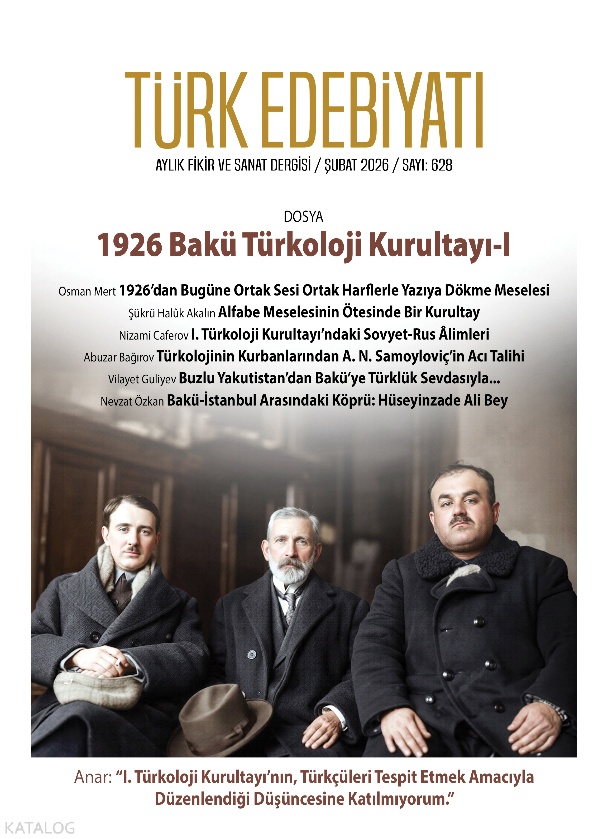 Bu sayımızda, 1926 yılında Bakü’de toplanan Birinci Türkoloji Kurultayı’nın yüzüncü yılı vesilesiyle, Türk dünyasının ortak alfabe arayışını tarihî, siyasi ve kültürel boyutlarıyla ele alıyoruz. Dosyamız, alfabe meselesini akademik bir tartışmanın ötesine taşıyarak; ortak hafıza, birlik ve beraberlik fikri ile bu fikrin zaman içinde uğradığı kırılmaları ortaya koyuyor.